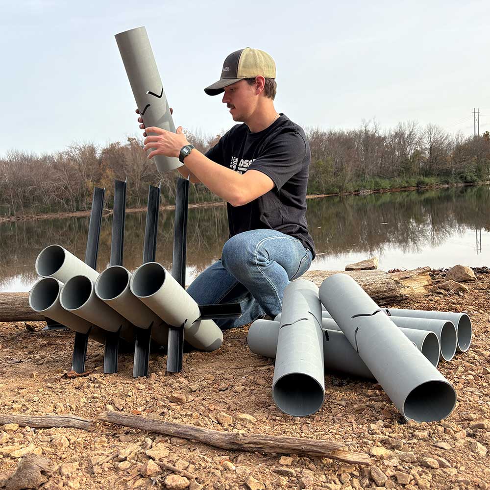 Crawfish need habitats and we are here to help! Many areas have limited cover and crawfish tend to use their own space. The uniquely placed limbs in our Crawfish Condo provide individual spaces allowing the crawfish to hide helping to cut down on predation and cannibalism while increasing growth rates. Additionally, this condo gives females separation to protect her eggs. Crayfish Condos also offer better monitoring opportunities.