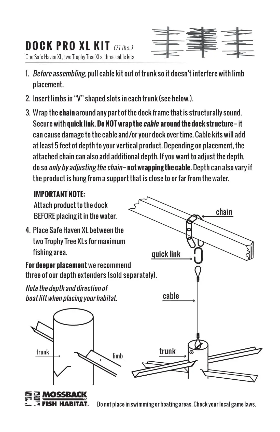 Dock Product Installation: Cable kits will add at least 5 feet of depth to your product, and the chain can add up to 27 inches. Chain can be adjusted to change depth. Please see instruction sheet for more placement information.