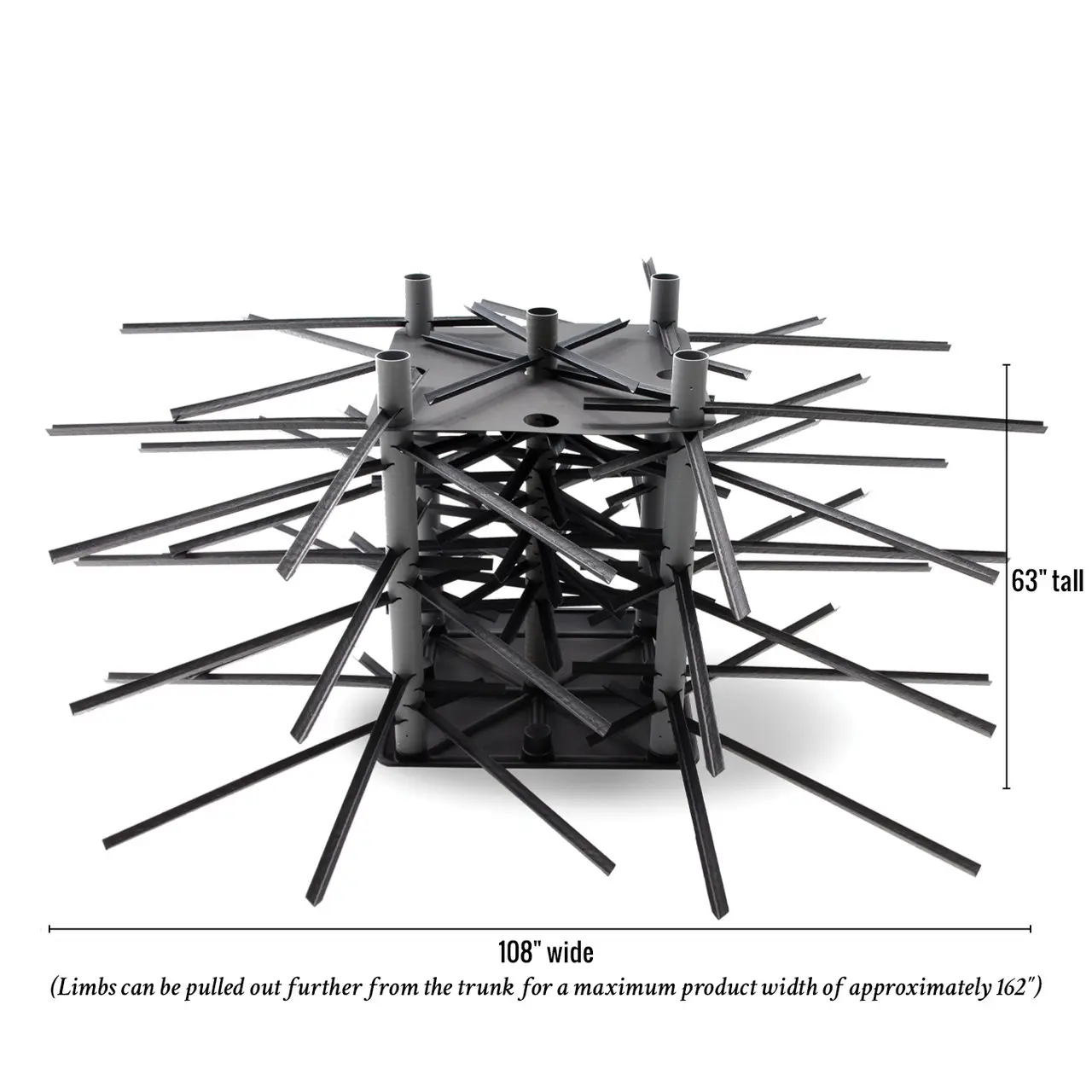 Width with evenly distributed limbs: 108 inches. Width with limbs fully extended (must leave a minimum of 4 inches on one side of limb): 162 inches