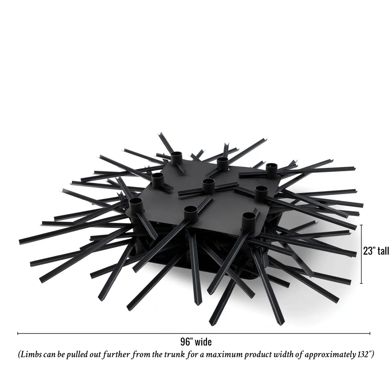 Width with evenly distributed limbs: 96 inches. Limbs can be pulled further from the trunk for a maximum product width of 132 inches (must leave a minimum of 4 inches on one side of limb).