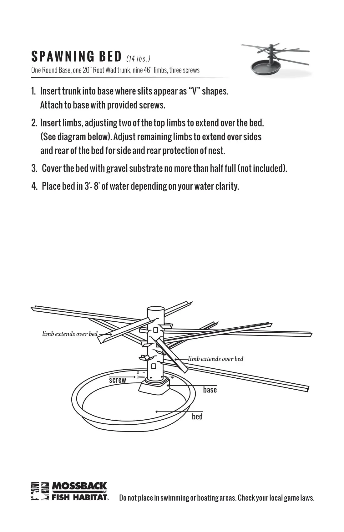 Do not place in swimming or boating areas. Check your local game laws.